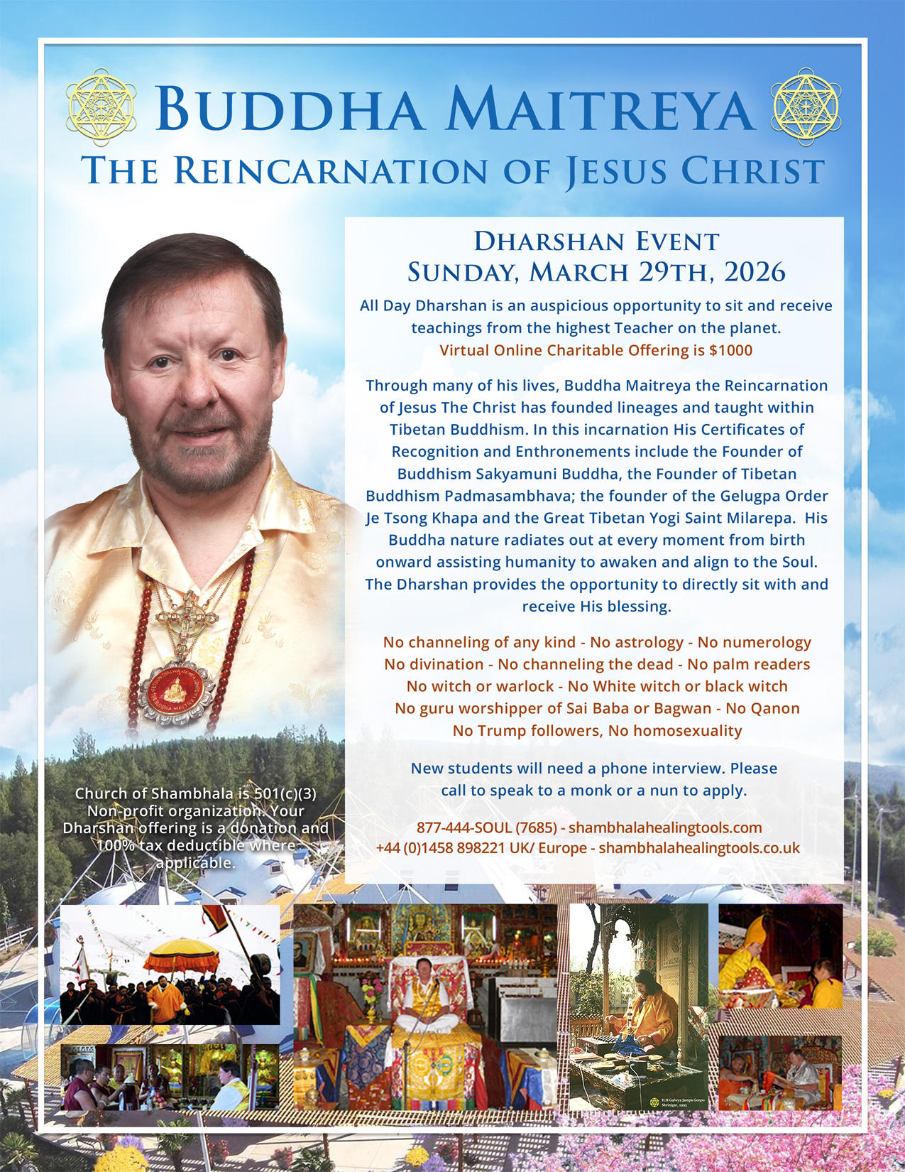 The Church of Shambhala Vajradhara Maitreya Sangha 9977 Bottle Rock Rd, Kelseyville California 95451. visits are by application & invitation only