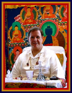 It's a very interesting type that I do that's a little different than what most people experience. It's based on the use of the American Indian drum, which I play naturally and is recorded. At the same time, another track is then played where I'm using cymbals and Tibetan bells and bowls from Tibet that I use naturally in my Puja's when I'm sitting and meditating on my own. So I just play that along with the drums. Then on another track, I actually do an invocation that I would do in my healing practice, where I'm invoking the Seven Rays or the invocation of the alignment and the healing of chakras to colors and to sound and to certain vibrations that applies to natural laws that are found in esoteric healing. When you study along those lines, there are very specific laws that are applied to the Law of Love and when that energy is applied and you understand it, it helps to radiate that energy more in a conscious level just in higher mind or higher intuition. So the music actually applies higher mind in the teaching and it applies an intuitive nature that, just by expressing the Truth in the impression, like certain colors, when they come into a room... even in psychology they found that if you paint a room a certain color and you go into that room, it has a direct effect on your emotions and your mind and your sense of well-being and your ability to study or your ability to relax or your ability to sleep or your ability to be calm and not be fidgety. They found that by changing those colors that actually helps change the different vehicles of the body. Those are laws that are applied in nature that have an effect on us, naturally, in our senses that we're not consciously aware of. But they're there. In the higher mind, by applying the relationship of what's best known around color and it's relationship to virtue and the relationship of certain qualities and characteristics that are expressed in humanity, those are applied in the Soul Therapy Music. So it's done in a way to where it's just a prayer or an invocation that applies those energies and it helps to bring about what's known as the Science of Invocation and Evocation. So you really don't sit there and think logically or try and figure out what the is being said or anything, because there's a lot of music involved and you're just relaxing along with it and the teachings are more or less harmoniously going along with the rhythm of the music. It's more or less a very creative, both right and left hemisphere activity that goes on while you're meditating so it very much satisfies the energy of the mind and the energy of the emotion, sitting in meditation. The energy of the physical body becomes much more awake and much more alert energetically to allow higher telepathy or intuition to take place.